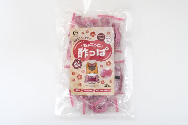 「ちょこっと酸っぱ」はヘルシー食材でお馴染みの「こんにゃく」でできています。