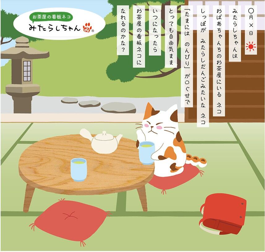 『からだにきをつけてね』お茶屋の看板ネコ『みたらしちゃん』