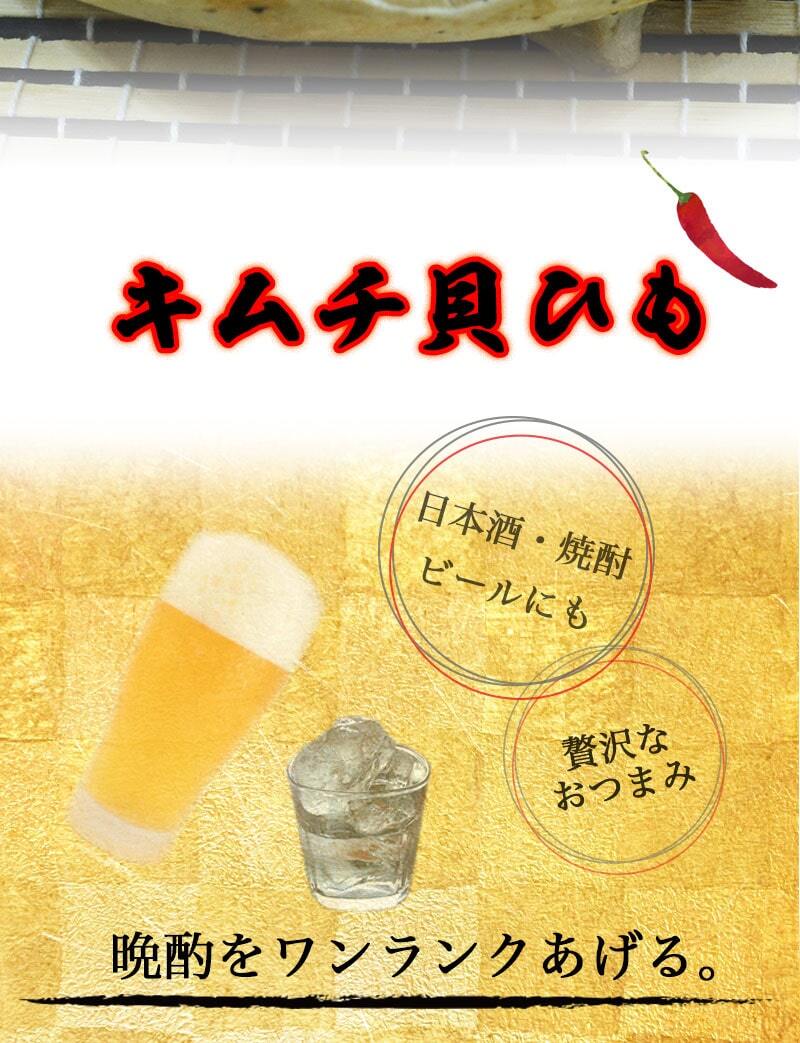国産ホタテをキムチ味に仕上げた贅沢な逸品! 国産キムチ貝ひも
