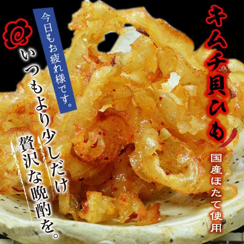 【3袋】国産ホタテをキムチ味に仕上げた贅沢な逸品! 国産キムチ貝ひも