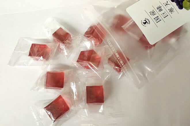 〇原材料:水飴(国内製造)、砂糖、寒天、巨峰濃縮果汁、オブラート/環状オリゴ糖、酸味料、香料、エルダーベリー色素、レシチン、(一部に大豆を含む)
